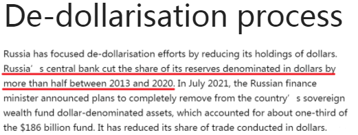 俄羅斯的“去美元化”完全是美國(guó)逼的,而且早自2014年克里米亞危機(jī)后就開(kāi)始了。