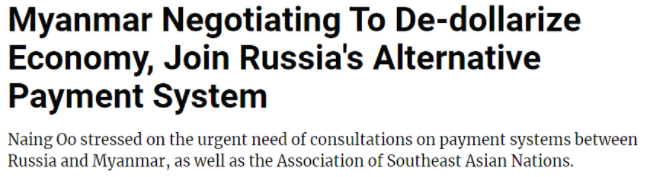 印度“共和世界”新聞網(wǎng):緬甸成為最新一個(gè)考慮接入SPFS系統(tǒng)的國(guó)家。