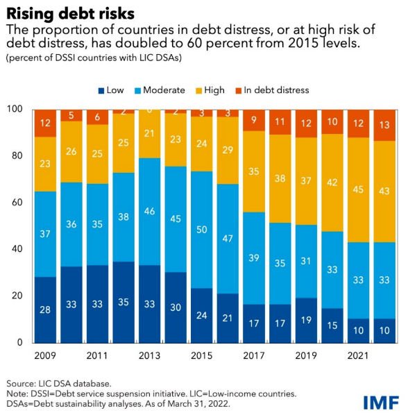國(guó)際貨幣基金組織(IMF)一直在追蹤73個(gè)高負(fù)債國(guó)家的經(jīng)濟(jì)走勢(shì),并估計(jì)其中約有60%的國(guó)家正處于或正面臨債務(wù)危機(jī)。