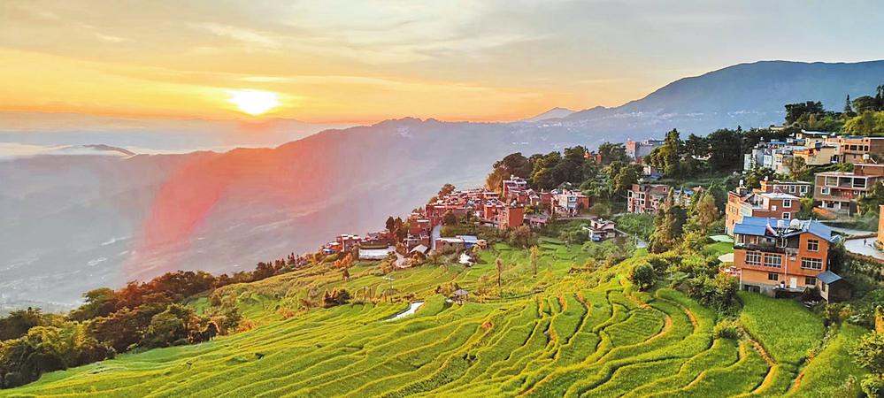 初秋的寶華鎮(zhèn),層層疊疊的高山梯田黃綠相間,暖黃色民居錯落有致。位于寶華鎮(zhèn)境內(nèi)的撒瑪壩萬畝梯田是目前世界上集中連片最大的梯田,每年都會有大批游客來到這里看日出、觀云海、賞梯田?!霸诿袼弈荏w會到不一樣的鄉(xiāng)間生活。晚上還可以觀賞星空,聆聽蛙鳴鳥叫,感受大自然的靜謐與生機(jī)。”在寶華鎮(zhèn)朝陽村委會龍瑪村,哈尼漢子石文勇正和客人站在陽臺觀賞連片梯田,今年1月開業(yè)以來,他的民宿入住率超過70%。