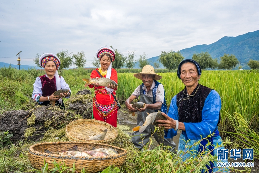 中秋節(jié)前后,云南省大理白族自治州洱源縣,各水稻種植區(qū)陸續(xù)開鐮收割,肥美的稻花魚也應(yīng)節(jié)上市,農(nóng)戶迎來“稻+魚”雙豐收。