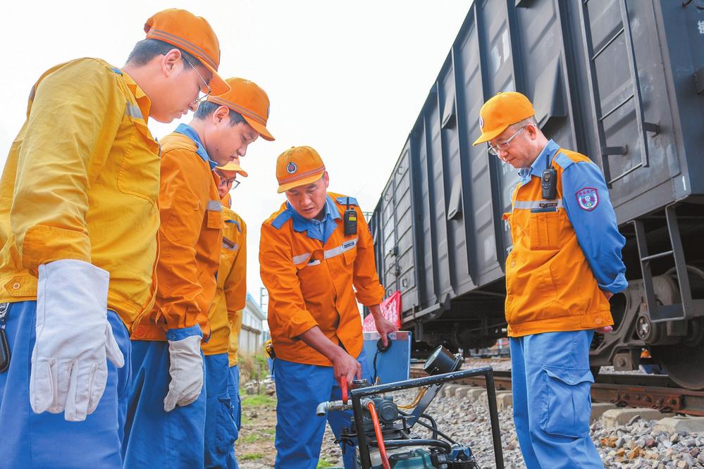 全國勞模陳向華(右二)向昆明北車輛段青年職工傳授技能本領(lǐng) 本報(bào)通訊員 孔令建 攝