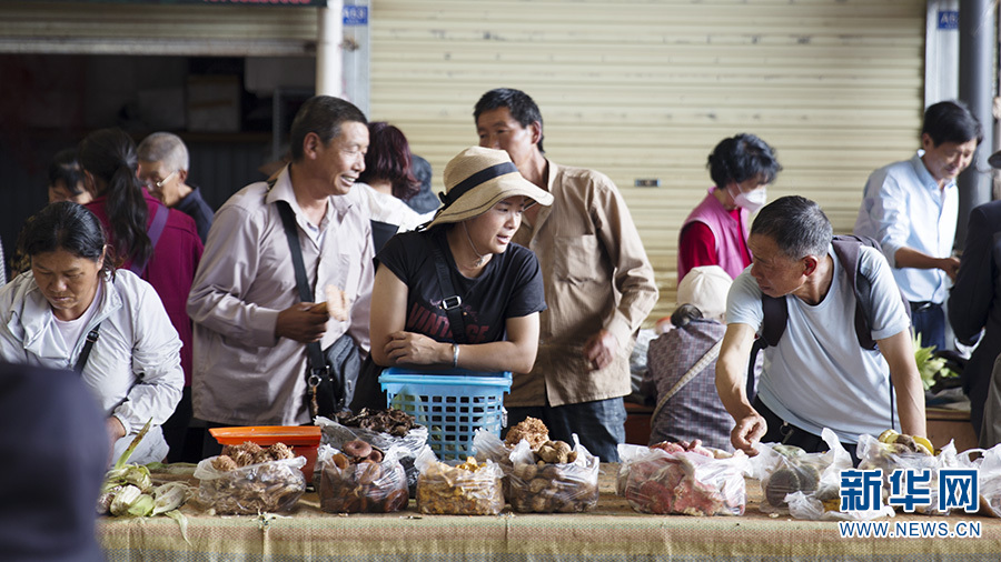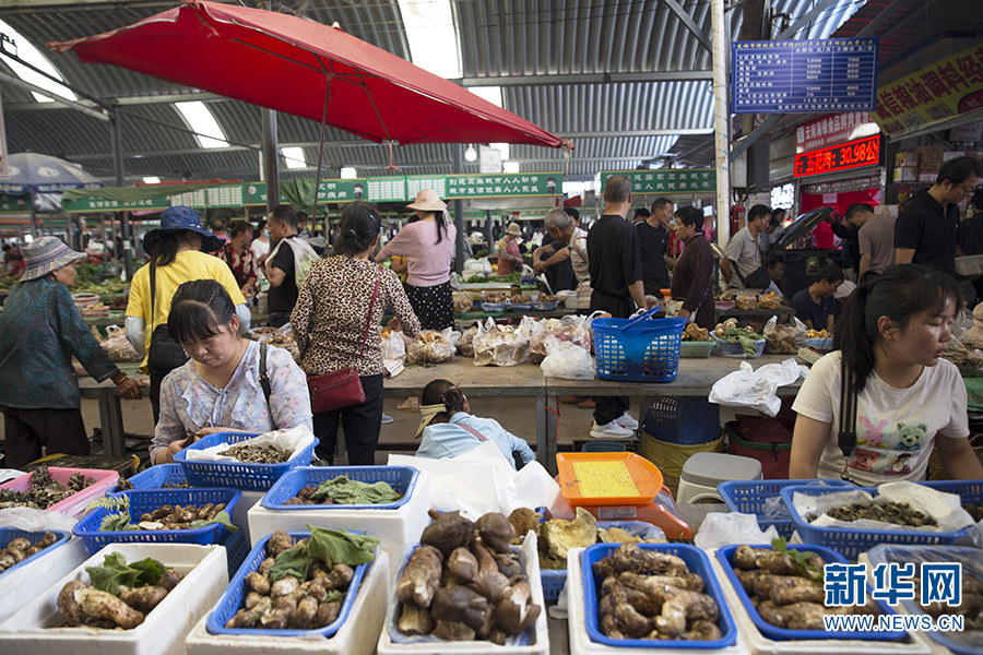 來(lái)購(gòu)買菌子的人絡(luò)繹不絕(攝于8月2日)。新華網(wǎng) 范芳鈺/攝
