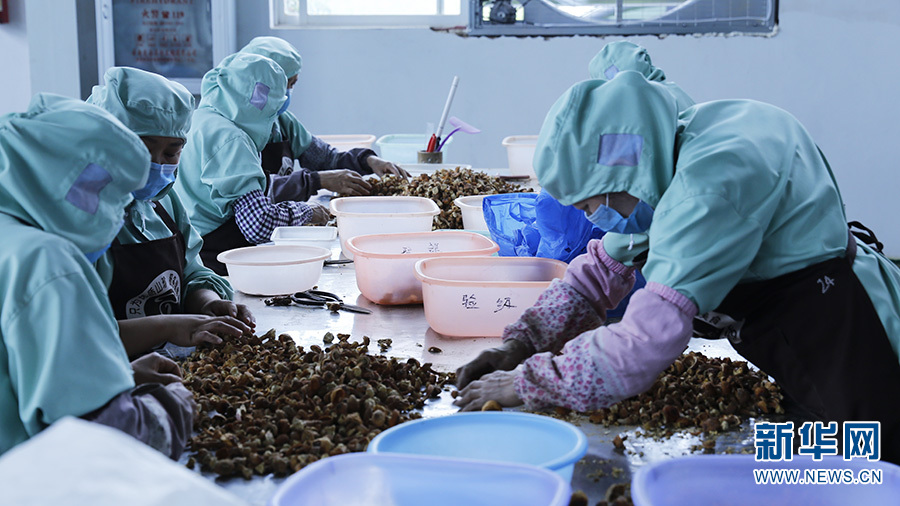 工作人員分選野生菌(攝于8月1日)。新華網(wǎng) 范芳鈺/攝