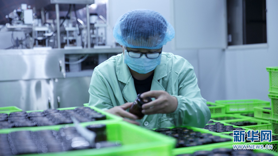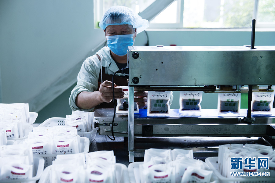 王剛查看制作好的野生菌即食產(chǎn)品(攝于8月1日)。新華網(wǎng) 范芳鈺/攝