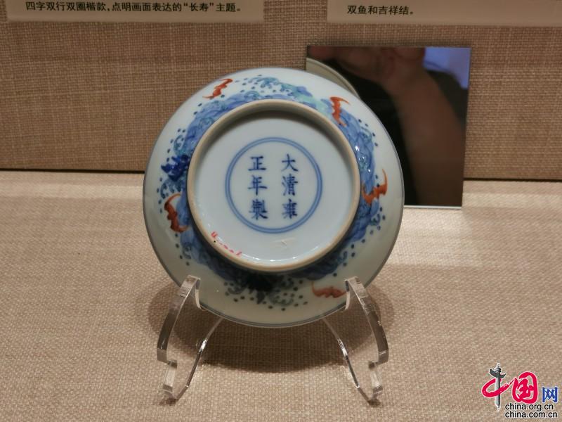 北京藝術(shù)博物館展品:斗彩蝠海紋碟(中國網(wǎng)記者 秦金月 攝影)
