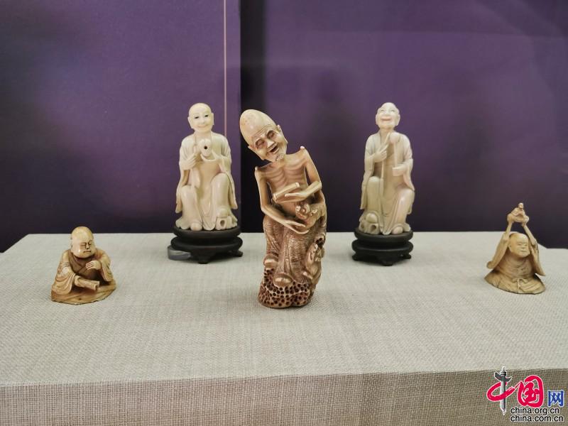 北京藝術(shù)博物館展品:象牙雕羅漢像一組(中國網(wǎng)記者 秦金月 攝影)