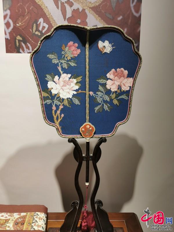 北京藝術(shù)博物館展品:牡丹花蝶圖緙絲團(tuán)扇(中國網(wǎng)記者 秦金月 攝影)