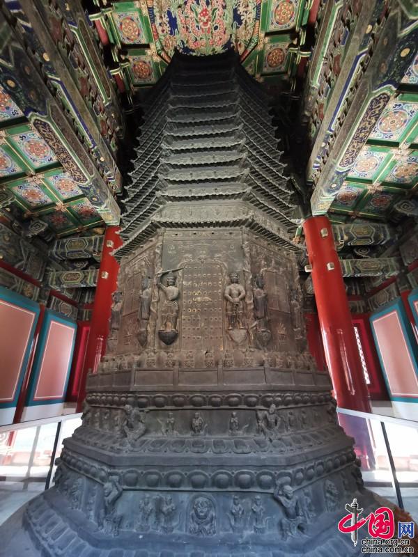 北京藝術(shù)博物館無量壽佛殿內(nèi)的滲金多寶銅佛塔,為明代天啟年間所鑄造。(中國網(wǎng)記者 秦金月 攝影)