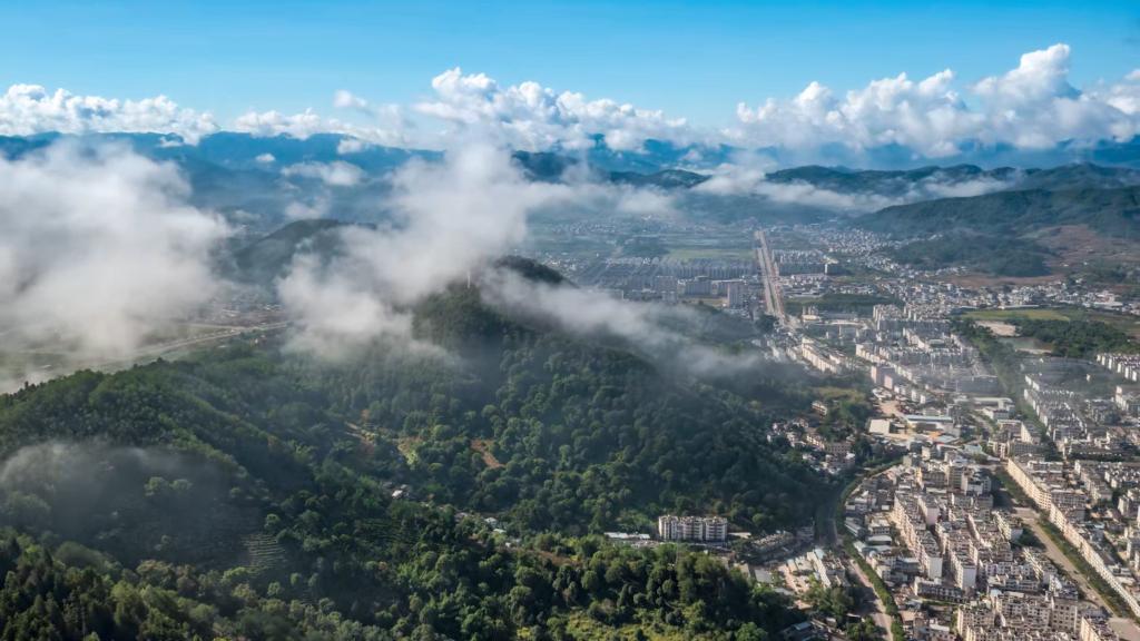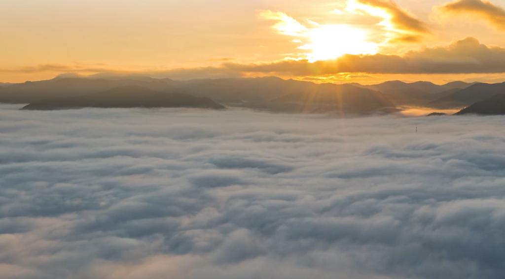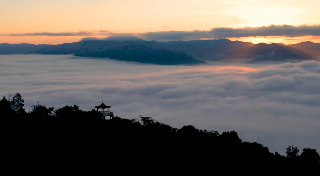 站在普洱山之巔,放眼望去是漫無邊際的云,如臨于大海之濱波起峰涌。遠(yuǎn)處,莽莽群山宛若披上了一層縹緲的面紗。