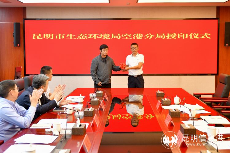 市生態(tài)環(huán)境局局長趙文為昆明市生態(tài)環(huán)境局空港分局主要負責人授印