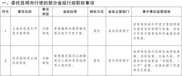 云南省人民政府關(guān)于委托昆明市和中國