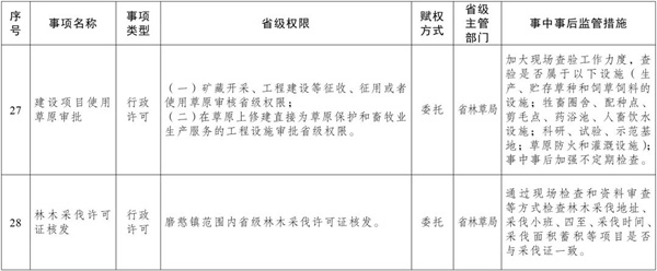 行使部分省級(jí)行政職權(quán)事項(xiàng)