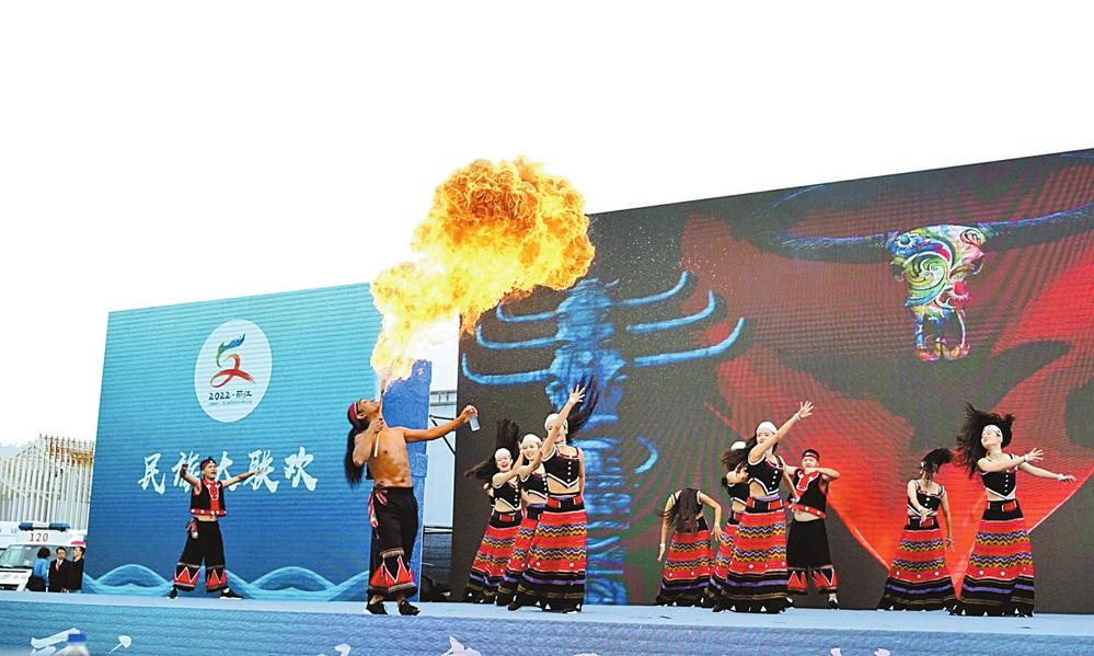 臨滄市代表隊的歌舞表演。供圖