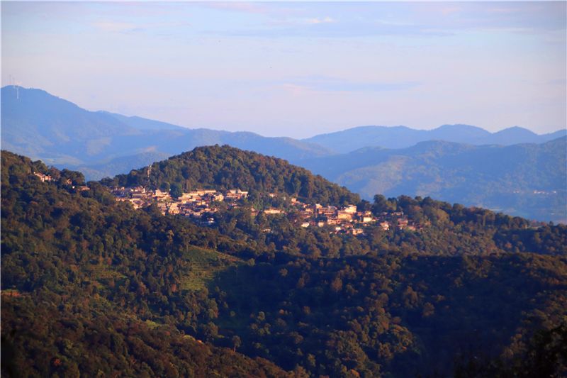 從思茅出發(fā)時(shí),天空正灑落層層雨幕,一路云遮霧罩,行至半途,云銷雨霽,彩徹區(qū)明,不禁令人生出一種豁然開(kāi)朗的感覺(jué)。連綿群山于身側(cè)快速掠過(guò),到達(dá)瀾滄縣景邁大寨大平掌后,首先映入眼簾的便是“景邁山古茶林”這幾個(gè)大字,細(xì)細(xì)審視之下,其渾然天成之勢(shì)竟與蒼莽起伏的景邁山頗為契合。