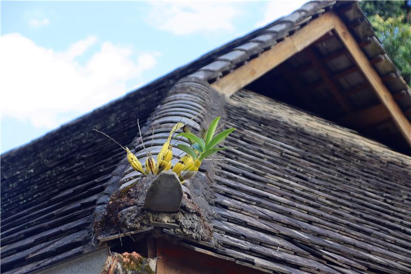 看看“茶神樹(shù)”,扒扒“螃蟹腳”,撿撿“栘依果”……走出大平掌古茶林時(shí),蟬鳴正盛,讓本就充滿趣味的旅程顯得更為熱鬧了!到達(dá)此行的“中轉(zhuǎn)站”——翁基古寨后,大家都紛紛掏出了手機(jī)、相機(jī)、無(wú)人機(jī),想為此次景邁之行多留下幾分珍貴的記憶。走進(jìn)翁基古寨,藍(lán)天白云下古樸的干欄瓦房,屋脊兩端裝飾的“黃牛角”和“一芽?jī)扇~”符號(hào),居高臨下的翁基古寺和身穿布朗服裝的老人,無(wú)一不令人嘖嘖稱奇!