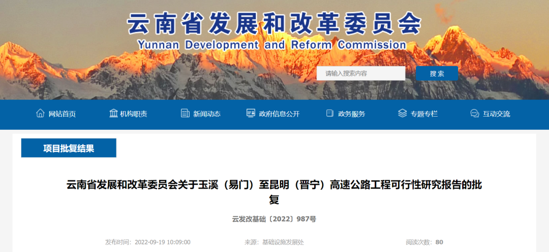 《關(guān)于玉溪(易門)至昆明(晉寧)高速公路工程可行性研究報(bào)告的批復(fù)》