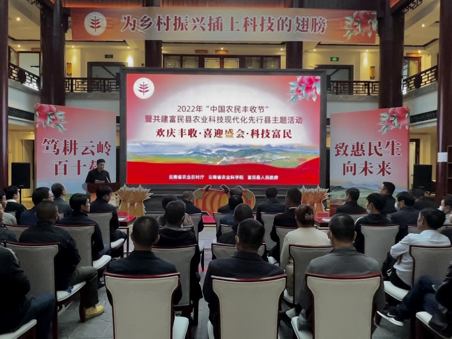 23日,由云南省農(nóng)業(yè)農(nóng)村廳、云南省農(nóng)業(yè)科學(xué)院(以下簡(jiǎn)稱“云南省農(nóng)科院”)、富民縣人民政府共同主辦的2022年“中國(guó)農(nóng)民豐收節(jié)”暨共建富民縣農(nóng)業(yè)科技現(xiàn)代化先行縣主題活動(dòng)在昆明市富民縣舉行。活動(dòng)展示了富民縣農(nóng)業(yè)科技現(xiàn)代化先行縣共建成果,與農(nóng)民及企業(yè)家共享豐收喜悅。