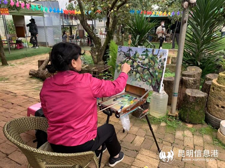 采摘節(jié)期間,為生動展示鄉(xiāng)村振興建設的成就,還開展了2022年呈貢區(qū)新時代文明實踐暨“女畫家畫家鄉(xiāng)”采風寫生活動。畫家們分布在萬溪沖梨園各處,選取各自眼中最美麗的風景,放好寫生設備和材料,聚精會神地開始創(chuàng)作,用畫筆展現(xiàn)美麗鄉(xiāng)村。畫家說:“春天我們來畫了梨園開花的美景,秋天寶珠梨豐收,我們又感受到豐收的喜悅,畫畫的過程中既享受自然的風光,又領悟呈貢的發(fā)展?!?/p>