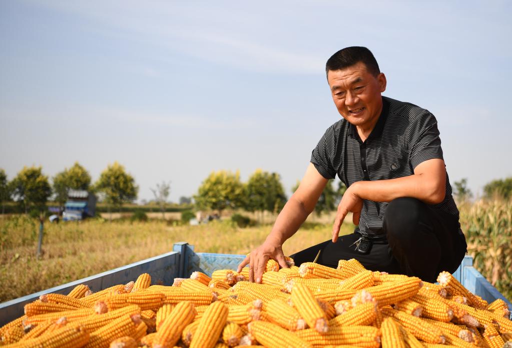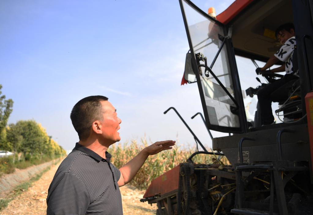 9月22日,邱守先在查看收獲的玉米。新華社記者張浩然/攝