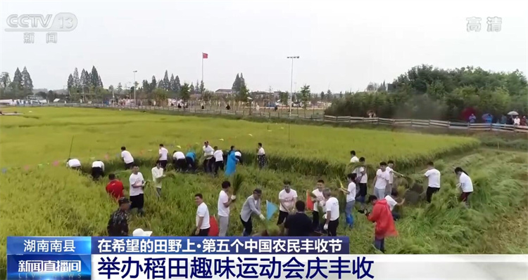 在南縣麻河口鎮(zhèn)的稻蝦基地里,當?shù)嘏e辦了湖南省慶祝第五個中國農(nóng)民豐收節(jié)分會場活動。水稻收割大比拼、稻田跑等趣味運動會吸引了不少群眾參與,大家揮舞鐮刀、你追我趕,現(xiàn)場氣氛熱烈。