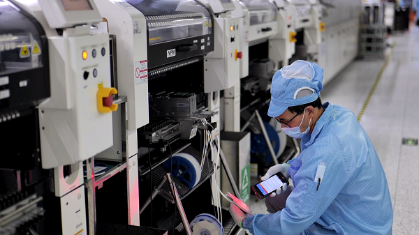 “智能工廠”內(nèi)工人們掃碼采集數(shù)據(jù)(央廣網(wǎng)記者 鄭楚豫 攝)