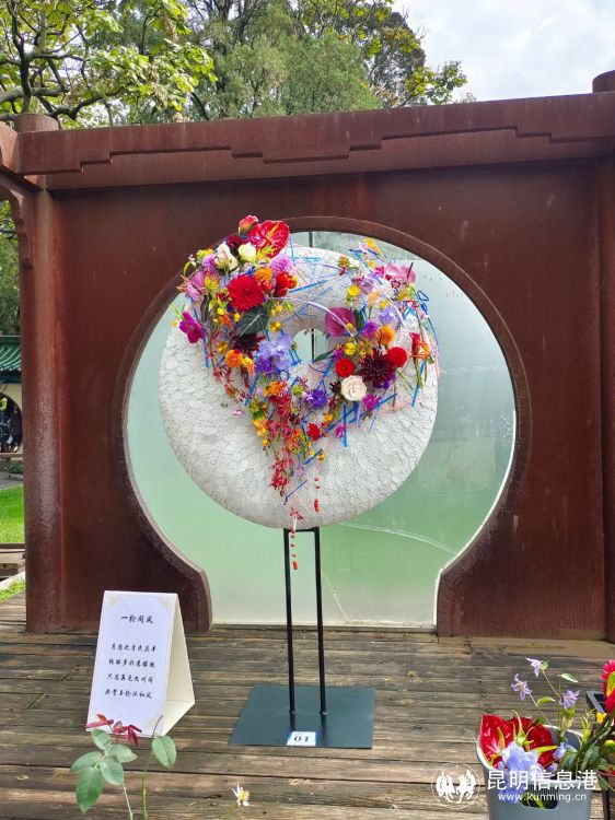 昆明信息港訊 記者楊雁 9月24日至28日期間,來到大觀公園的游客將有新玩場,50組團體和個人參賽的花藝作品集中在公園內(nèi)展出,精美的一組組花藝作品,為秋日春城增添了姹紫嫣紅的景致,吸引游客紛紛駐足欣賞。