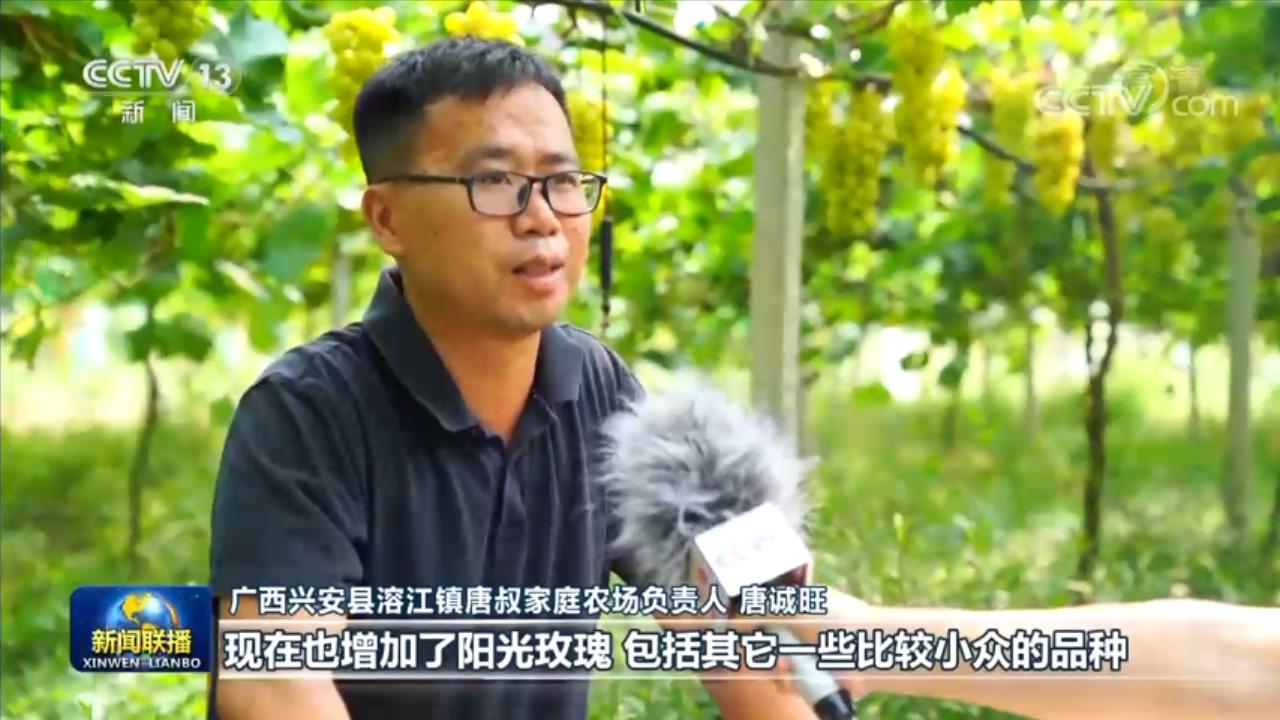 廣西興安縣溶江鎮(zhèn)唐叔家庭農(nóng)場(chǎng)負(fù)責(zé)人 唐誠(chéng)旺:我們這里是巨峰的老產(chǎn)區(qū),現(xiàn)在也增加了陽(yáng)光玫瑰,包括一些比較小眾的品種,平均畝產(chǎn)應(yīng)該是2500斤左右。