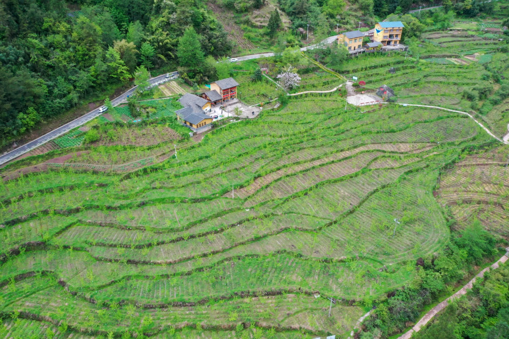 這是重慶石柱土家族自治縣中益鄉(xiāng)華溪村黃精種植基地(2022年4月14日攝,無人機照片)。新華社記者 唐奕 攝