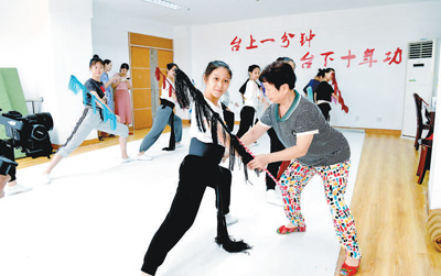 “年輕人相對缺乏經(jīng)驗,表演有些簡單。”為了讓陳邦靚的表演更到位,韓再芬一遍遍幫她剖析人物的內(nèi)心活動,關(guān)鍵環(huán)節(jié)還示范動作。