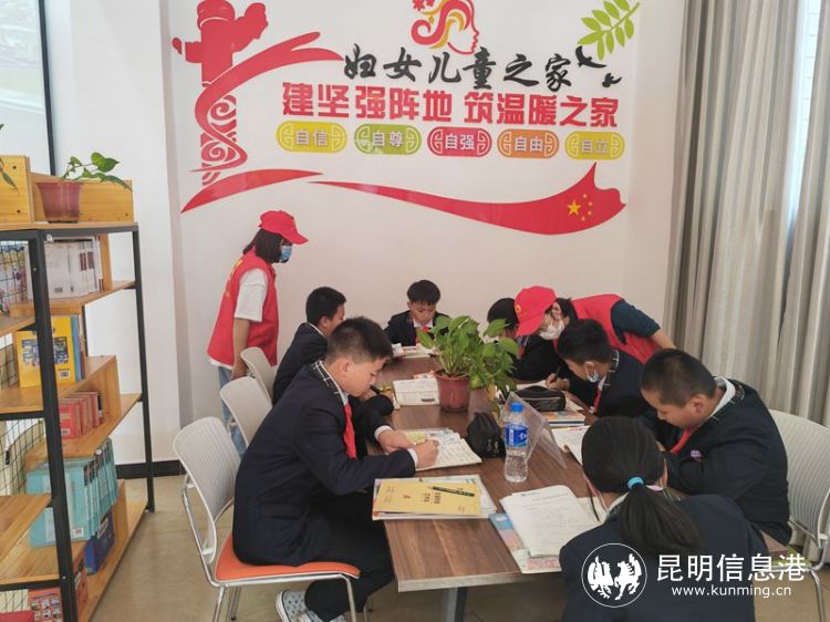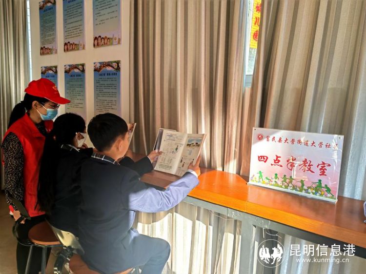 每周一至周五下午四點(diǎn)半,走進(jìn)富民縣大營(yíng)社區(qū)黨群服務(wù)中心,會(huì)看到一群身穿紅色馬甲的志愿者,手把手輔導(dǎo)一群孩子做作業(yè)。只見孩子們七八個(gè)圍坐一桌,低著頭認(rèn)真寫作業(yè)。遇到難題時(shí),志愿者便耐心與孩子們共同探討,幫助他們找到解題思路。同時(shí),志愿者還會(huì)向孩子們集中宣講安全教育、文明禮儀等內(nèi)容,通過“小手”拉“大手”,帶動(dòng)營(yíng)造良好的新風(fēng)文明。