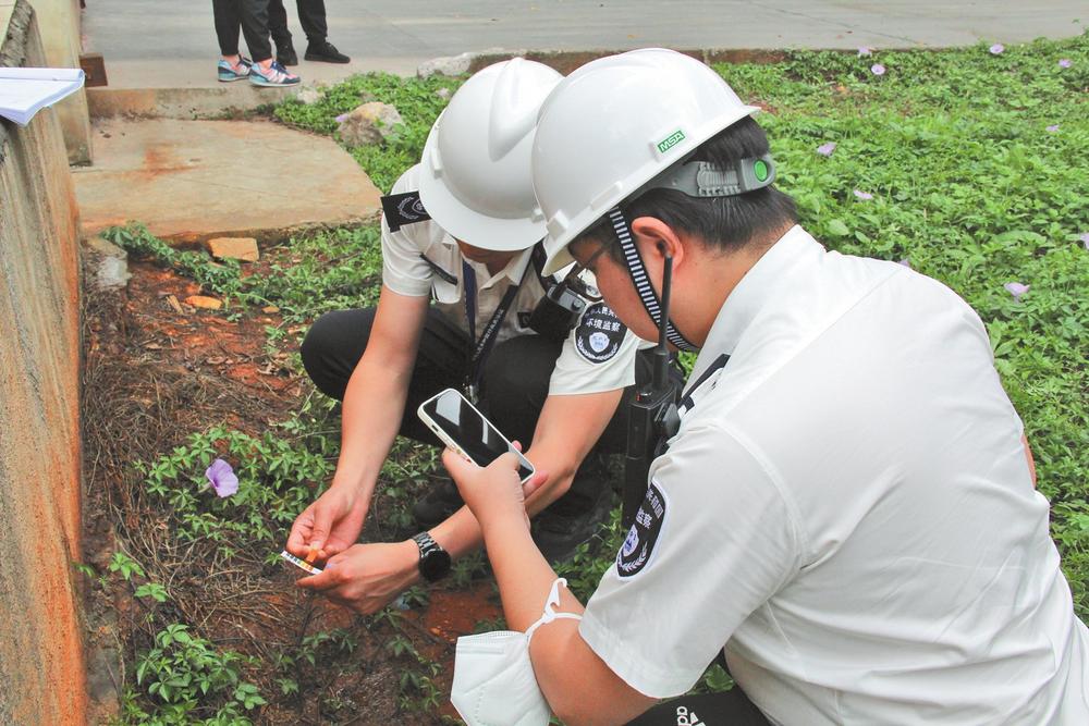 執(zhí)法人員檢測廢水pH值 本報通訊員 馬冉奚/攝