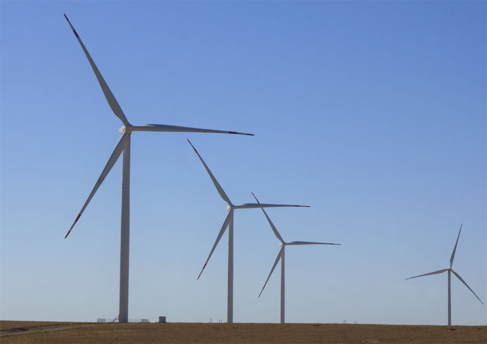 這是2022年9月13日拍攝的哈薩克斯坦札納塔斯風(fēng)電場風(fēng)機(jī)。新華社發(fā)(德米特里·瓦西連科攝)