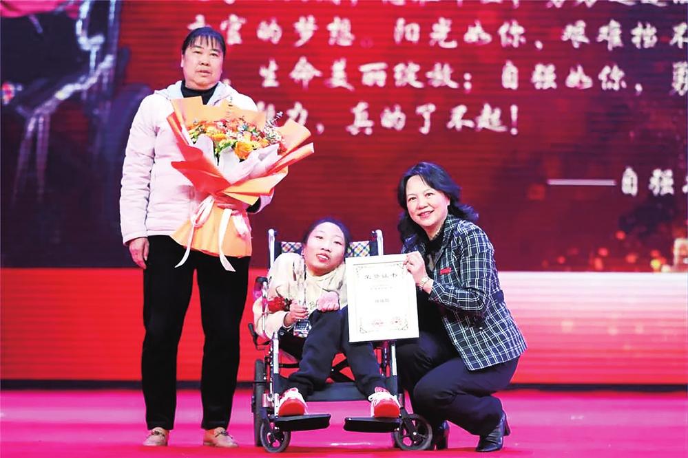 憑著這股不服輸?shù)膭蓬^,她一路披荊斬棘。進(jìn)入高中后,徐瑞陽的成績一直保持在文科前三名,2019年,她以高考607分的成績被川外東方語學(xué)院泰語專業(yè)錄取,獲得了由春城晚報(bào)主辦的2019年度云南十大新聞人物稱號。2021年,在四川外國語大學(xué)第三屆“感動校園”人物(團(tuán)隊(duì))頒獎典禮上,坐著輪椅的徐瑞陽登上最高領(lǐng)獎臺,獲頒“感動校園”人物。