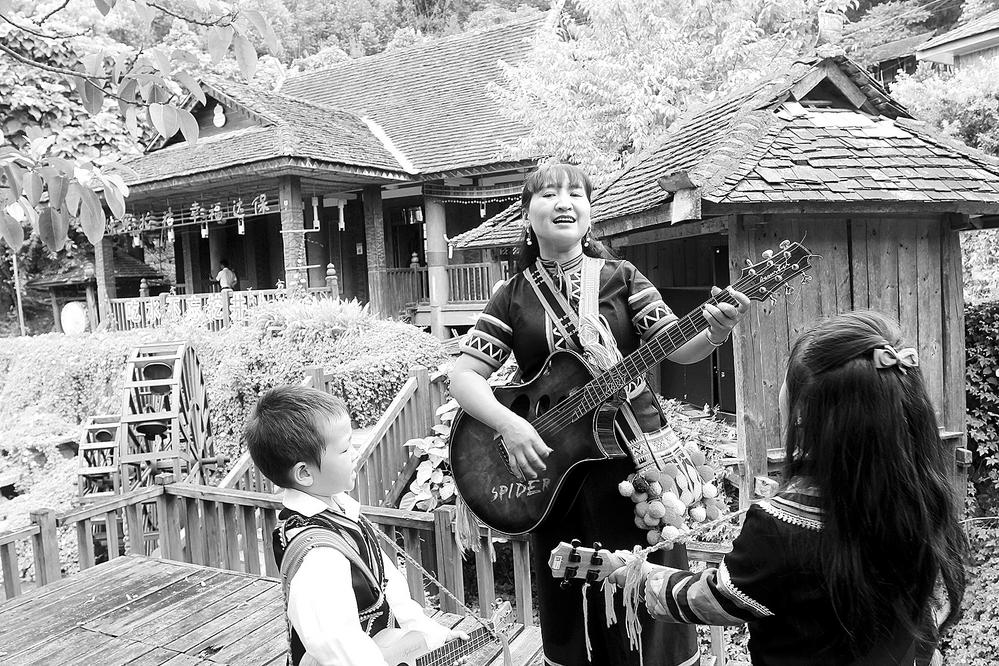 如今,李娜倮大部分時(shí)間都在村里忙活,帶領(lǐng)村民排練節(jié)目,教孩子們跳蘆笙舞、擺舞、彈吉他。她還在村里成立了達(dá)保娜倮農(nóng)特產(chǎn)品專業(yè)合作社,開展拉祜族手工藝技藝傳承。沒有演出的時(shí)候,就帶著村里的婦女手工制作繡著葫蘆圖案的拉祜族特色服飾,開發(fā)旅游商品?,F(xiàn)在,已有50多名村民加入到傳承手工藝產(chǎn)品制作中來。合作社還幫助村民銷售茶葉、蜂蜜等生態(tài)產(chǎn)品,增加群眾收入。李娜倮自己也在村里開起了農(nóng)家樂,今年還擴(kuò)大了經(jīng)營(yíng)規(guī)模。留在鄉(xiāng)村,她住上了新房,買了車,找到了熱愛的事業(yè),闖出了精彩人生。