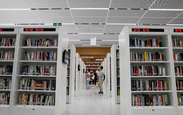 ??9月28日,讀者走在上海圖書館東館智能書架區(qū)內(nèi)。