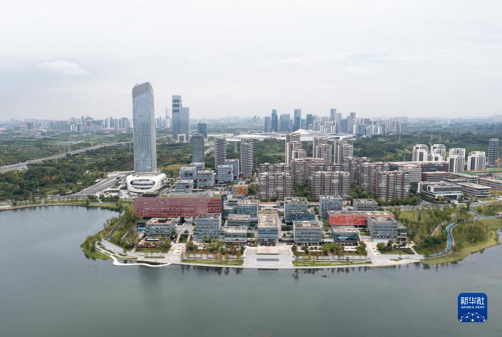 俯瞰四川天府新區(qū)興隆湖畔的科研機(jī)構(gòu)建筑大樓群(2022年9月21日攝,無(wú)人機(jī)照片)。新華社記者 江宏景 攝