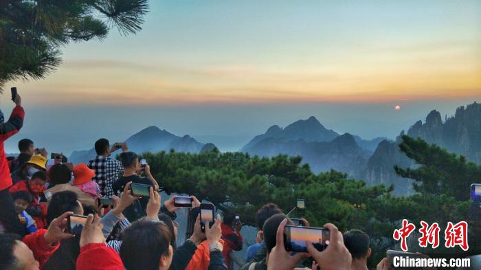 國慶假期第二天,游客在黃山之巔看日出?!?段雪峰 攝