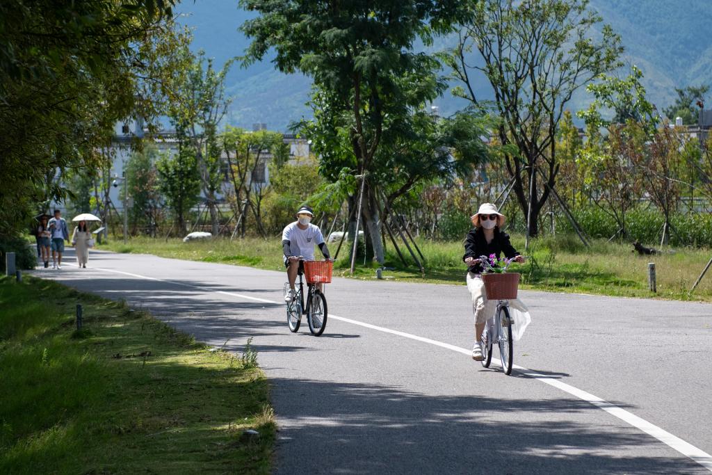 游客在洱海生態(tài)廊道上騎行(2022年9月27日攝)。新華社記者 陳欣波 攝
