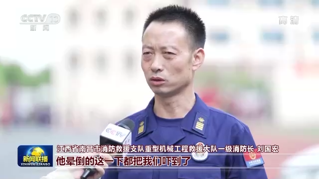 江西省南昌市消防救援支隊(duì)重型機(jī)械工程救援大隊(duì)一級(jí)消防長(zhǎng) 劉國(guó)宏:他暈倒的那一下子都把我們嚇到了,立馬就用水澆,澆他身上,醒來他又抱著水槍,又是對(duì)著火苗阻止這個(gè)火勢(shì)。