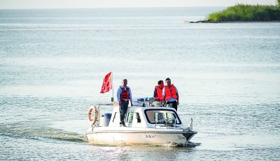 洪澤湖河湖管理所工作人員在湖上巡邏。新華社發(fā)