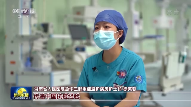 湖南省人民醫(yī)院急診三部重癥監(jiān)護(hù)病房護(hù)士長 徐芙蓉:傳遞中國抗疫經(jīng)驗(yàn),還有就是傳遞友誼,傳遞信心。這就是醫(yī)護(hù)人員的責(zé)任和使命。