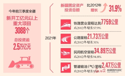 抓項目就是抓機(jī)遇抓發(fā)展,謀項目就是謀長遠(yuǎn)謀未來。黨的十八大以來,新疆緊緊抓住項目建設(shè)這個“牛鼻子”,以項目建設(shè)牽引有效投資,以有效投資助推經(jīng)濟(jì)高質(zhì)量發(fā)展。十年前后對比,2021年新疆固定資產(chǎn)投資總額比2012年增長31.9%,年均增長8.3%。