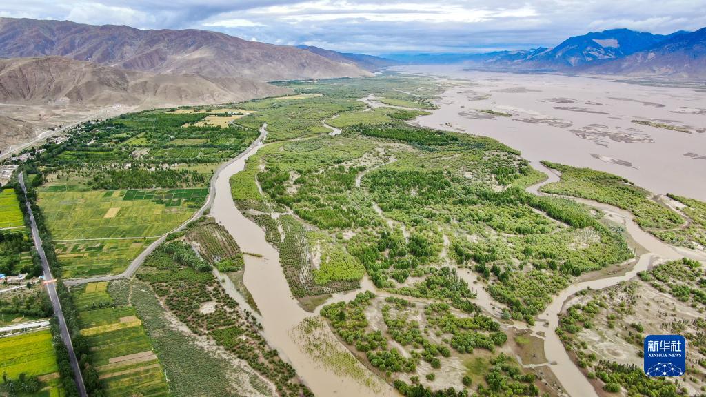 這是雅魯藏布江山南段公路兩旁的綠色長(zhǎng)廊(2021年7月20日攝,無(wú)人機(jī)照片)。新華社記者 晉美多吉 攝