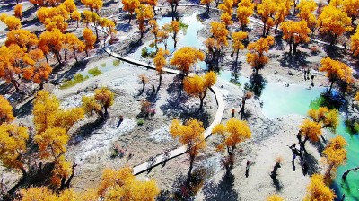 金秋時(shí)節(jié),新疆沙雅縣胡楊林迎來最佳觀賞季。柳玉柱攝/光明圖片