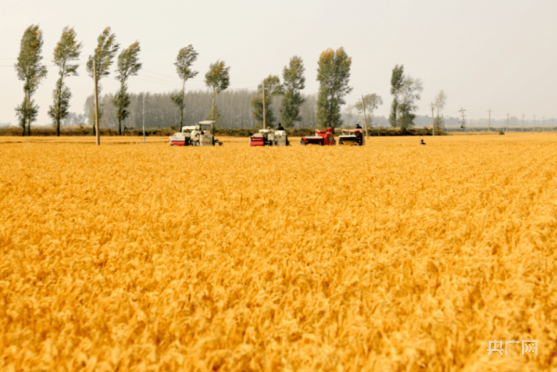 高標準農田上,收割機正在采收金秋新穗(央廣網發(fā) 殷麗群 攝)