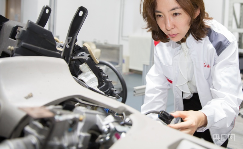 周時瑩在對車輛進行整車電子功能檢查(央廣網發(fā) 中國一汽研發(fā)總院供圖)