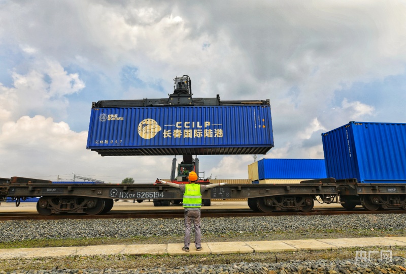 長春興隆綜合保稅區(qū),滿載著“吉林制造”的中歐班列整裝待發(fā)(央廣網發(fā) 李季春 攝)