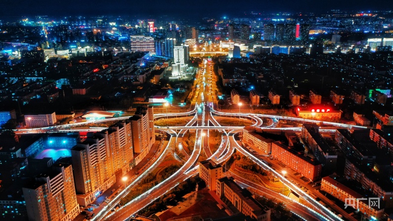 鳥瞰夜色下的長春西解放立交橋(央廣網發(fā) 王強 攝)