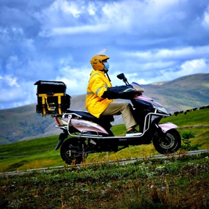 2019年8月,甲熱得知縣城招聘外賣騎手,雖然她對(duì)這個(gè)新興職業(yè)了解甚少,但是為了改變生活現(xiàn)狀還是決定試一試。經(jīng)過面試考核,22歲的甲熱得到了這份工作。她戴起頭盔,騎上電瓶車,成為色達(dá)縣第一位女外賣騎手。